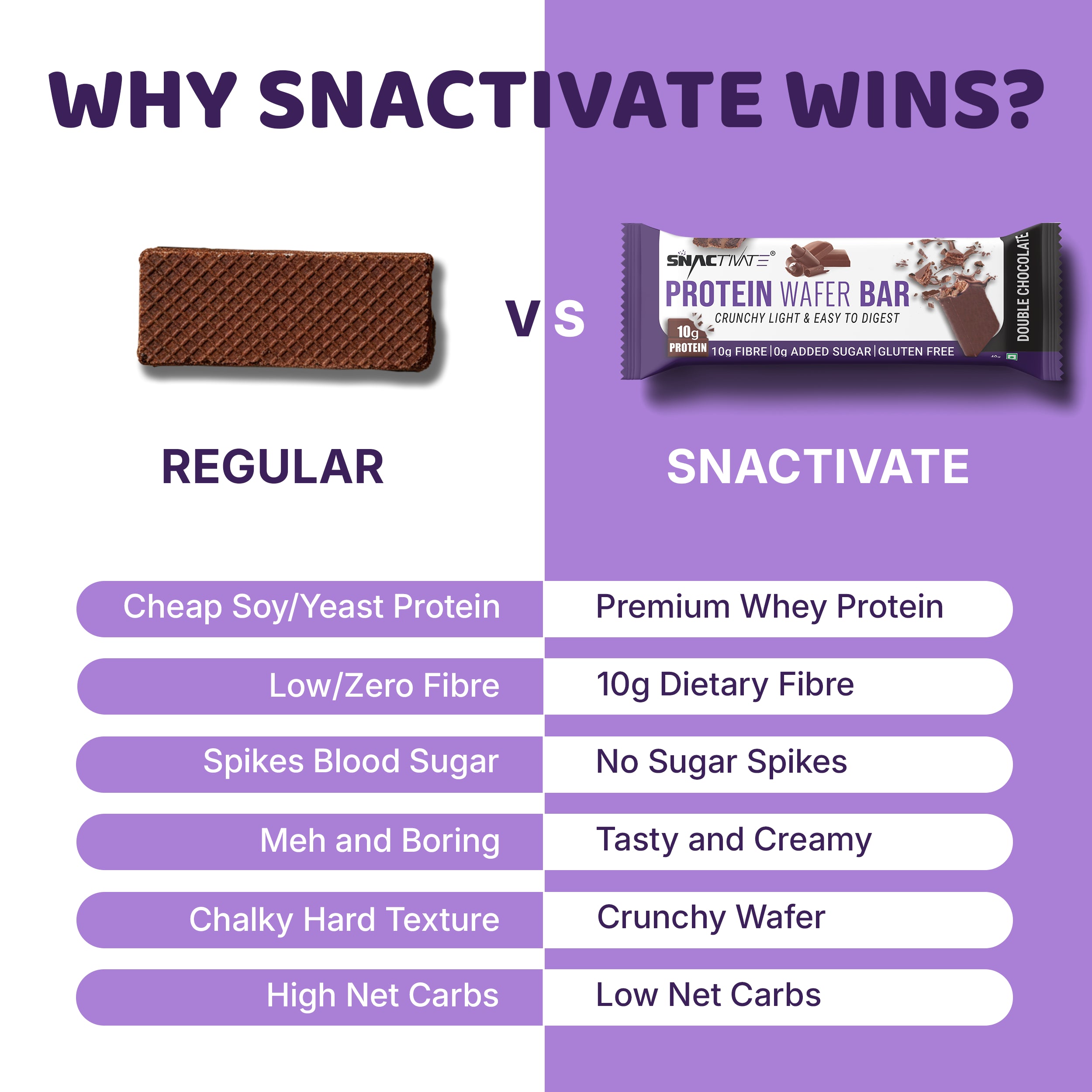 Double the chocolate, double the joy. Premium protein, crunchy wafer, zero guilt.